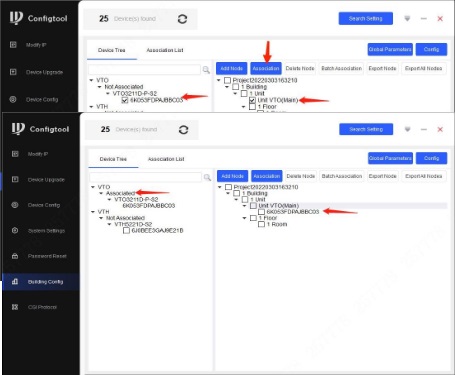 Nota: Daca exista doua sau mai multe VTO-uri, selectati Main & Sub VTO pentru celelalte dispozitive VTO suplimentare.